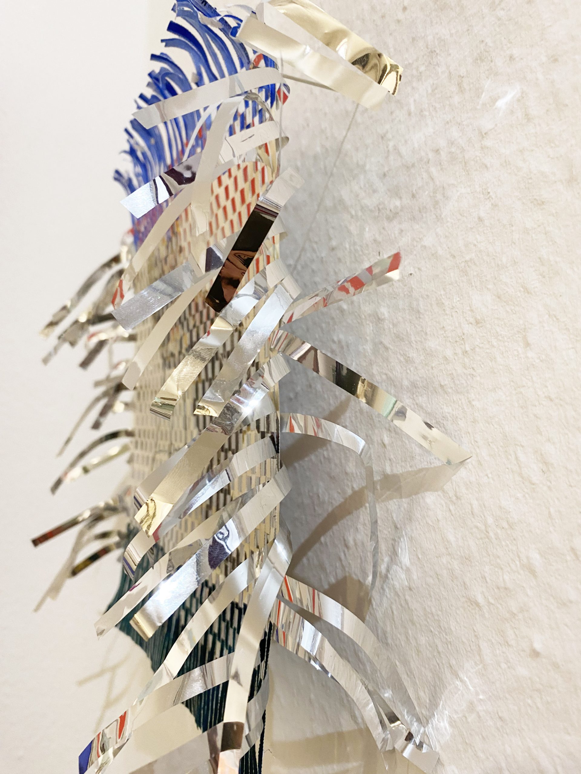 2025 FRÜHER WAR MEHR LAMETTAPapier, Acrylfarbe, Pigment, Ölkreide, Lametta SERIE “BE BRAVE” 2024-2025 FRÜHER WAR MEHR LAMETTA Papier, Acrylfarbe, Pigment, Ölkreide, Lametta